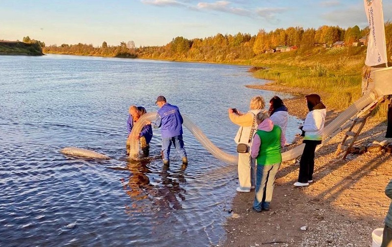 В реку Онега в районе деревни Красное, Плесецкого округа Архангельской области была выпущена очередная партия рыбоводной продукции.