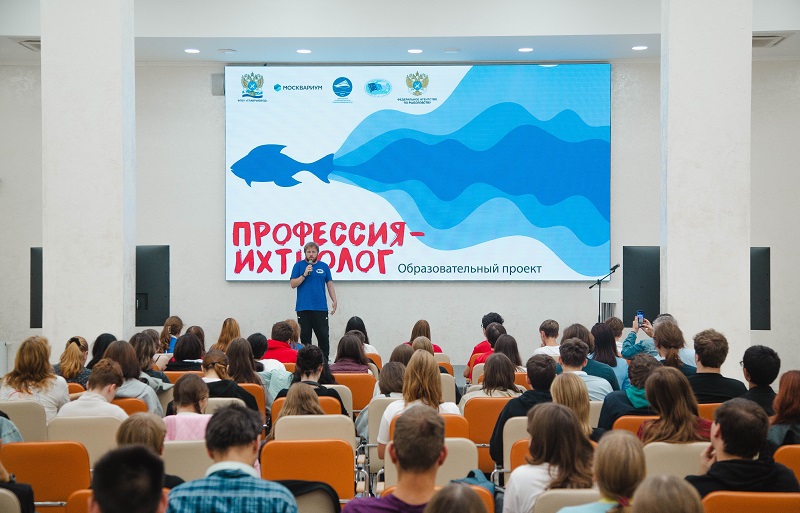 Спикеры главных организаций рыбохозяйственного комплекса – Главрыбвода, Всероссийского научно-исследовательского института рыбного хозяйства и океанографии (ВНИРО), Всероссийского научно-исследовательского института пресноводного рыбного хозяйства (ВНИИПРХ) увлекательно рассказали ребятам о профессиях ихтиолога, гидробиолога, рыбовода, исследователя морских глубин.