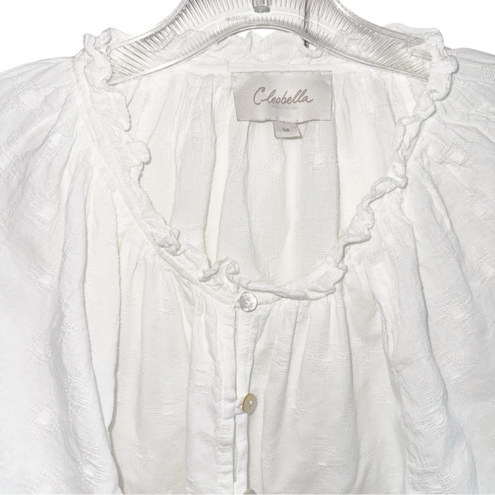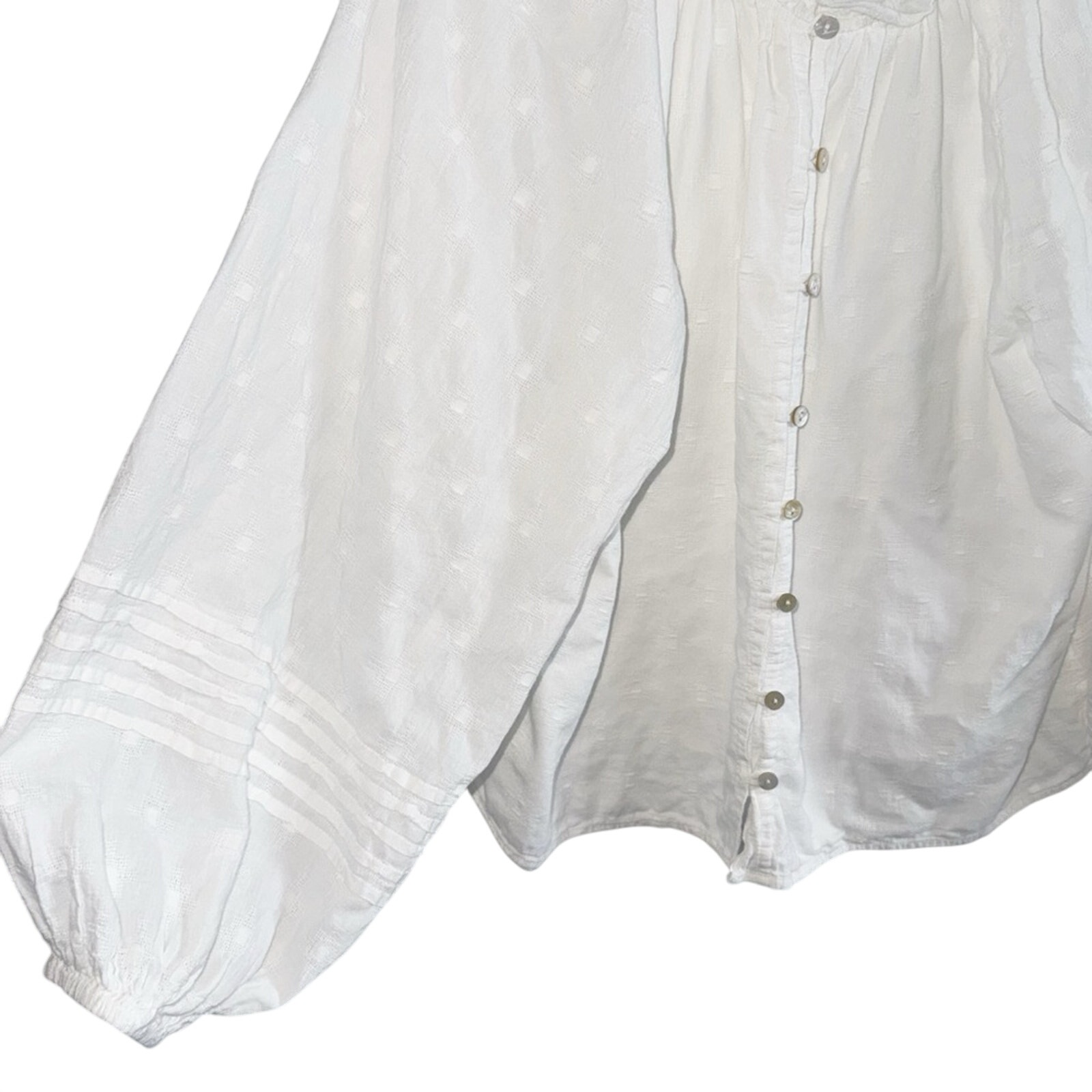Anthropologie Antonia Cleobella Pleated Button Down Shirt Blouse Prairie White Peasant Top Cottagecore