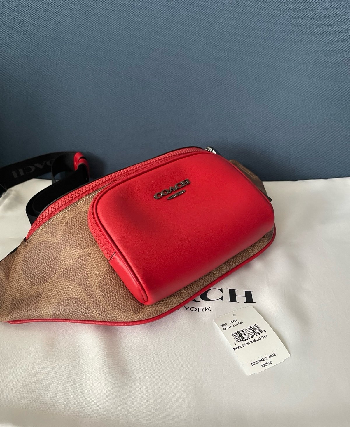 NWT Coach Racer Small Belt Bag Maxi in Signature Canvas & Leather