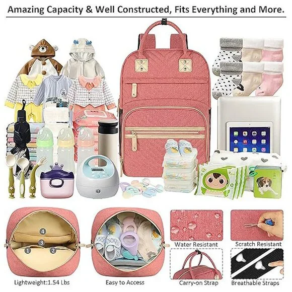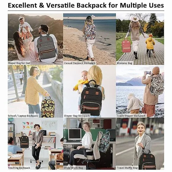 * Baby Registry Search & Shower: For yourself, a friend, wife, or family members, ' s baby diaper bag will be very practical and thoughtful; Backpack diaper bags were made in water-resistant and tear-resistant fabric, looking nice and durable; This would make a nice shower baby bag backpack; It' s material is soft and has good breathability, and is not easily deformed; Mainly used by people over 20 years old * Your Life Companion: Design of large diaper bag is based on practicality and can effectively help you to organizer 1-2 babys essentials in the shortest time and easy access; Various floral pattern baby girl diaper bag looks very sweet and cute; Stylish grey diaper backpack is designed for dad; This baby diaper bag backpacks make you the avant-garde parents; During your busy weekdays and enjoyable weekends, this diaperbag will keep you company to perform amazing storage functions * Impressed With Overall: baby backpack diaper bag only 1.54 lbs, but comes with 10 pockets and spacious to keep diapers, breast pump, wipes, formula, toys, cell phones, baby bottles, books, laptop, clothes well organized; The quality is top-notch, strong zipper, sturdy stitching, detachable stroller straps; Especially has 3 insulated bottle pockets to keep warm/cold 2-4 H; This makes diaper bag purse very durable and will not easily fall apart; A good bet baby boy baby girl diaper bag * Multifunction Usages: This backpack diaper bag is a convertible bag. Refined
