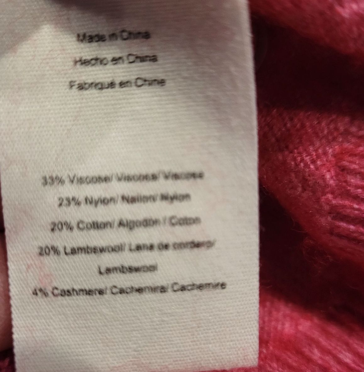 The item is a small-sized crewneck sweater featuring a cute bunny rabbit design, made from a luxurious blend of nylon, viscose, cashmere, cotton, and lambswool. The sweater is styled in a pullover fashion with long sleeves, suitable for casual or travel occasions in the winter and fall seasons. With a solid pink color, this sweater from the ED Ellen Degeneres brand combines a touch of hipster, designer, and princess themes in a classic and preppy style. The sweater must be hand washed to care for it properly.