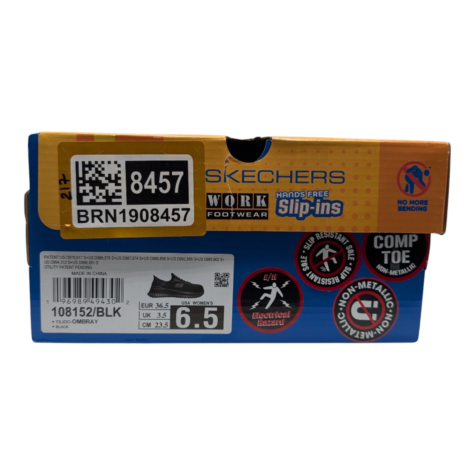 Skechers Women's Slip Ins Composite Toe Work Shoes Black Size 6.5 Hands Free NWB