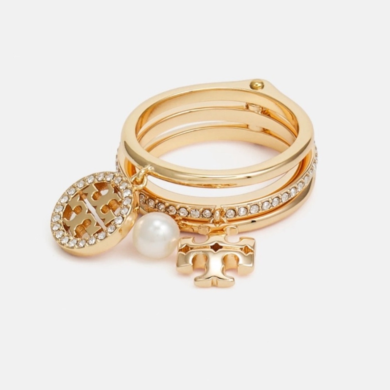 NWT Tory Burch Miller Pave Charm Stack Ring