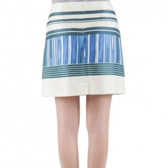Tory Burch Plaited Stripe Engineered Skirt Size 10 NWTStyle # 21151346Tory has once again created a magnificent masterpiece that wears like a piece of fine art!Smooth silk is taken to the next level with an engineered ornamental pattern of blue and green stripes. It looks as great as it feels!Material: Shell: 51% Silk, 49% Cotton, Lining: 100% SilkDry clean.Imported Red shark tag on hem home removableWe are not an expert on everything we sell, so some of our knowledge may be limited. As for manufactures overall fit Items are retail store purchases and may have been handled or tried on by store customers Prior to sending, photos are taken of item with shipping label and a zip tie tag attached to represent the item purchased and shipped