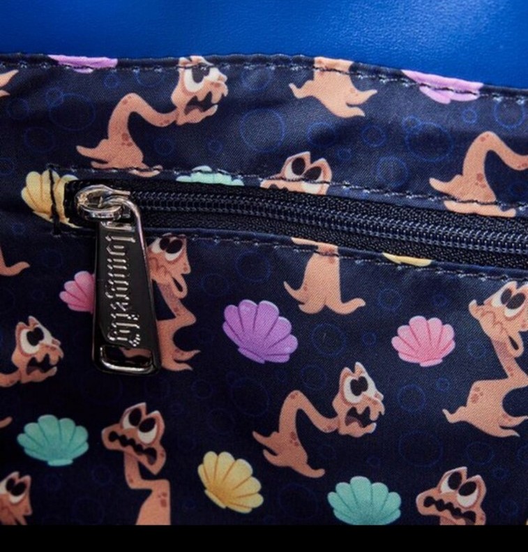 New with tags Ursula plotting loungefly crossbody bag, the little mermaid villian. The purse detaiksls Ursula's with her tentacles which glow in the dark, bubbles around the bag & flotsom & jetsam on the back, a satin fabric inside featuring her garden creatures with an additional zipper pocket, and an adjustable strap. Crossbody bag dimensions: 6.5” W x 8” H x 3.5” D I can adjust shipping to priority if prefered for xmas, just message me before purchase.